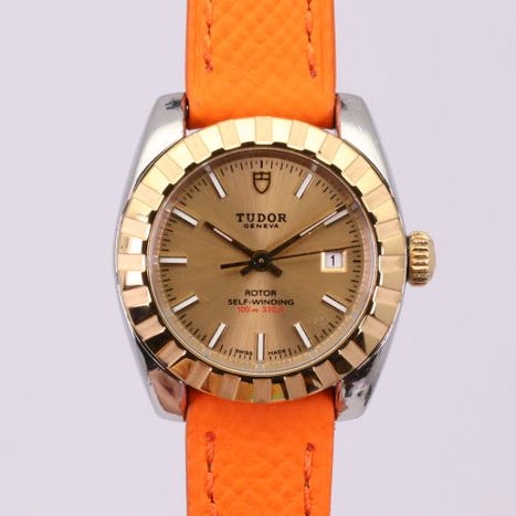 - // HUOMIOTO KIELIARKAKI // - Kun kello on asennettu jälkiasentajalla tai toisesta mallista peräisin olevia osia, kelloa pidetään räätälöitynä kellona. Tämä tarkoittaa, että kellossa voi olla osia, jotka poikkeavat alkuperäisistä tehtaan spekseistä. Räätälöinti voi vaihdella suuresti, joten korostamme seuraavat mahdollisuudet täyden läpinäkyvyyden takaamiseksi:- Jälkiasennusosat - Kellossa voi olla kolmannen osapuolen komponentteja (esim. kehykset, kellotaulut, osoittimet, safiirilasiset, ranneke ja jalokivien asetukset), joita ei ole valmistajan toimittamina. Nämä osat lisätään usein esteettisistä syistä, mutta valmistaja ei pidä niitä originaaleina.- Alkuperäiset osat muilta malleilta - Jotkut komponentit (esim. kellotaulut tai rannekkeet) on voitu hankkia samalta merkiltä olevista muista aidoista kelloista. Vaikka nämä osat ovat aitoja, niitä ei alun perin ole asennettu tähän tiettyyn malliin tai referenceen, mikä voi vaikuttaa keräilyarvoon tai valmistajan huoltopalvelun saatavuuteen.- Ei-alkuperäiset osat - Joissain tapauksissa räätälöidyissä kelloissa voi olla osia, jotka eivät ole alkuperäisiä eikä valmistajan valmistamia. Nämä komponentit voivat vaikuttaa kellon arvoon.räätälöidyt kellot eivät välttämättä ole oikeutettuja viralliseen huoltoon tai takuun piiriin merkin toimesta. Kaikkien tarjouspyyntöjen tulee olla tehty täysillä tiedoilla räätälöintiasetuksesta.======================================================================—// KUVAUS //—Malli: Tudor Prince Date 72033 Gold Linen Dial Automatic Sports Watch Alkuperä: SveitsiMateriaali: Ruostumaton teräsTaalipunki: Gold Linen Dial Koteloid? Koko: 32 mm (mitä kruunua ei lasketa)Käyttö: Sää: 19,0 cm ranteeseen. Ei lisälinkkejä.Liike: Tudor (ETA) 2824-2 automaattinen liikeAjanvaraus: ~38 tuntiaToiminnot: Ajan pitäminen, automaattinen ja manuaalinen viritys, viistävät osoittimet, päivämäärä, kierrekruunu.** Vesitiiviyden toiminnallisuutta ei tarkistettu tässä kellossa. Ei suositella uintiin tai sukellukseen. Ole varovainen pitäessäsi kelloa veden lähettyvillä. **—// TOIMITUSTAVARUOLO //—Alkuperäinen laatikko: Ei *(tulee jälkiasennuskellon laatikon kanssa)Alkuperäiset paperit: Ei—// TILANNE //—Kotelon kulutus | ORIGINAALI | : Mitätön (Joillakin kevyitä jälkiä ja kulumaa kotelossa)Kotelon takakannen kulutus | ORIGINAALI | : Pieni (kevyt naarmut ja karheus)Satiiniliimaisen lasin kulutus | MÄÄRÄTÖNTÄ | : Mitätön (safirilasi, hyvin vähän kulumaa reunasta)(Taalin) kellonkulutus | ORIGINAALI | : Ei mitään / Mitätöntä ("SWISS MADE" tulostettu kellojen 6 kohdalla, kaikki loistavat pilkut ehjiä. Tulostus on hyväkuntoinen)Käsien kulutus | ORIGINAALI | : Ei mitäänKehyksen kulutus JÄLKISÄÄNTÖ | : Pieni (jälkiasennus metallikehys kultamaalauksella)Kruunun kulutus | ORIGINAALI | : Pieni (Alkuperäinen Tudor Kruunu, kilpi-logolla. Kierrekiristys OK noin 1,5 kierrosta lukitusvaihtoehdolla. Näkyvää kulumaa ja töyssyjä)Jälkiasennusmetallinen ranneke (Käyttö yllä) | JÄLKISÄÄNTÖ | : Ei mitään *(Jälkiasennus metallinen ranneke kultamaalauksella)KÄSITELTAVAN TILANNE NOUDATTAA STANDARDIA:Ei (Paras) > Mitätön > Pieni > Keskivälin > Raju > Vaurioitunut (Pahin)— // AIKA-JHARIN SUORITUS //—Taso: -2 sekuntia päivässä(näyttää +/- sekuntia päivässä, osoittaa ajan päivittäistä voittoa/tappiota)Amp: 296 astetta(kellonvoiman siirtäminen varovalla jousitoiminnalla, pyörähdyksen voimank
