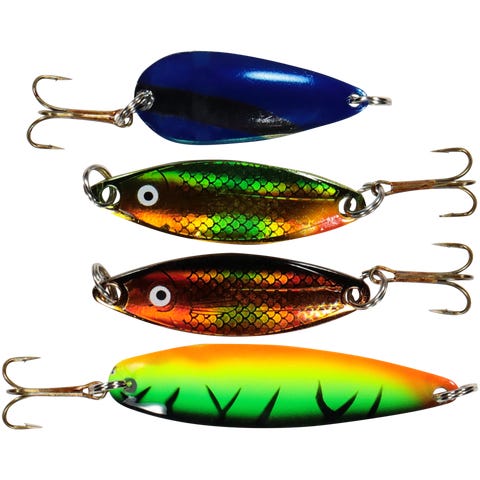 Abu Garcia Taimen, 4 eri spinnerin pakkaus, joka houkuttelee kaloja suureella liikkeellä vedessä.