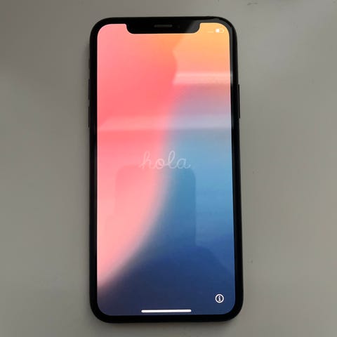 Apple iPhone XS älypuhelin, tallennustila 64 GB. Värinä hopea, lasinen etu- ja takapinta sekä metallinen runko. Näytössä koko etupuolen kattava kosketusnäyttö, jossa Face ID -kasvojentunnistus. Takana kaksoiskamera ja salama. Laitteessa iOS-käyttöjärjestelmä ja tuki App Store -sovelluksille, viestintään, internetin selaamiseen ja valokuvaukseen. Takalasin pinnassa näkyy halkeamia, jotka eivät estä laitteen käyttöä kuvien perusteella. Akun ilmoitettu huippukapasiteetti 72 % laitteen asetuksissa näkyvän tiedon mukaan.