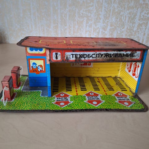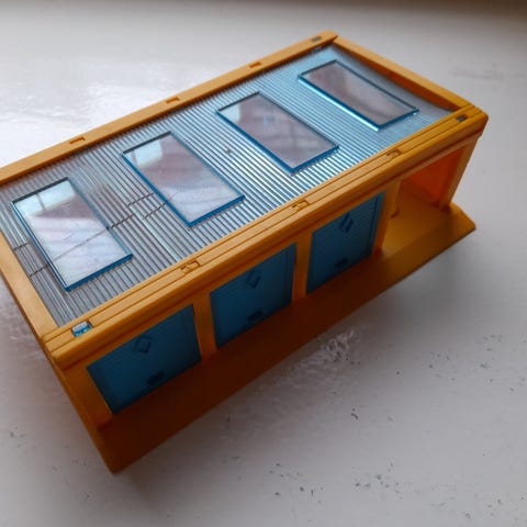 Schuco autotalli 3010/30 varianto. Valmistettu 50-luvulla U.s.zone germany. Pituus 12 cm, leveys 7 cm ja korkeus 6,5 cm. Nouto.