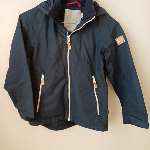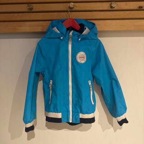 Reima lasten takki, koko 128 cm, unisex-mallia. Väri sininen. Materiaali pääosin polyesteriä. Takissa on vetoketjukiinnitys edessä ja vetoketjullinen rintatasku. Hupullinen malli, jossa pidempi helma takana. Hihansuissa on muotoillut leikkaukset ja heijastinyksityiskohtia. Sopii arki- ja ulkokäyttöön lapselle, jonka pituus on noin 128 cm. Takissa tahroja, joita ei ole yritetty pestä.