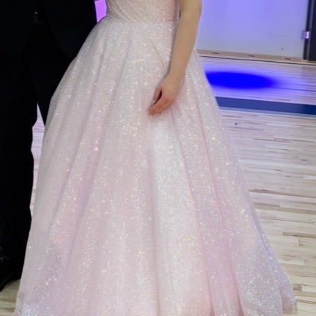 Vaaleanpunainen, uuden veroinen tylliunelma. Yhdet juhlat tanssittu. Koko 32, sopii n. 170cm pituiselle matalien kenkien kanssa. Pukua ei ole muokattu ollenkaan joten tästä saa helposti myös lyhyemmän. Mukaan pukupussi ja vannehame.