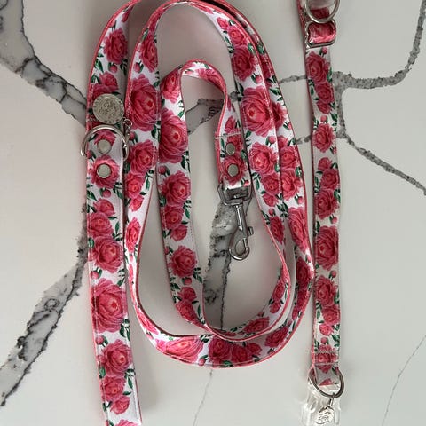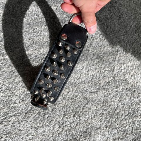 Käyttämätön Koiran panta ja talutin -setti. Punottu keltamusta narumateriaali, jossa koristeellinen verkkomainen pinta pannassa. Taluttimessa käsilenkki ja metallinen lukko kiinnitystä varten. Hihnan pituus 180cm kaulaan renkaasta renkaaseen 32 cm lev 4 cm. Tullut kasvattajan paketissa mutta jäänyt meillä käyttämättä.