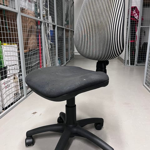 Ikea Millberget-työtuoli. Ehjä mutta niin kuin kuvassa näkyy, paljon käytetty.