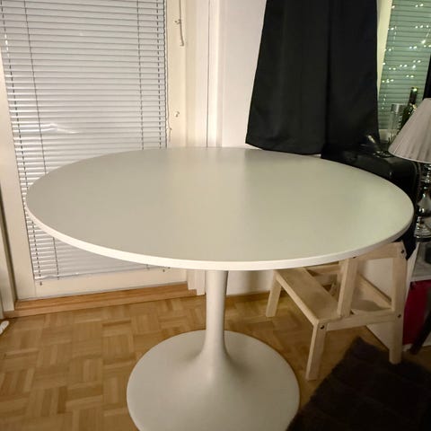 Myydään muuton alta pois erittäin hyvässä kunnossa oleva Ikean pyöreä Nackanäs-ruokapöytä ja kaksi saman sarjan tuolia. Väri akaasia/musta. Pöydän halkaisija 80 cm. Nouto Tampereen Pappilasta tai kuljetus Tampereen alueelle pientä korvausta vastaan.