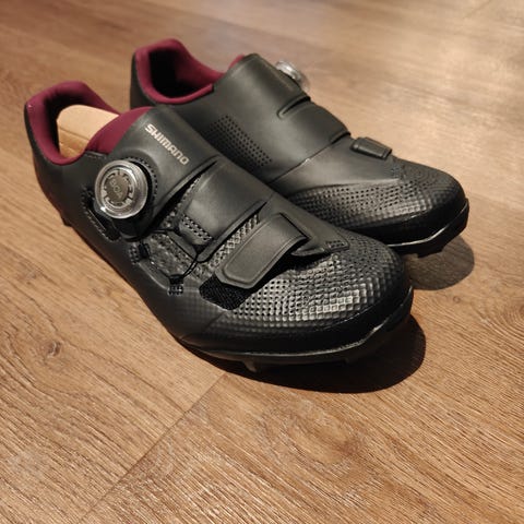 Sidi Trace 2 Woman maastopyöräilykengät koossa 36. Väri musta punaisilla yksityiskohdilla. Naisten malli. Kengissä on tarrakiinnitys ja solkikiristys jalkapöydän päällä. Pohjassa on maastopyöräilyyn tarkoitettu kuviointi ja paikat klosseille. Päällinen on synteettistä materiaalia, jossa heijastavat yksityiskohdat. Kengät soveltuvat maastopyöräilyyn ja yleiseen pyöräilykäyttöön klossipolkimilla.
