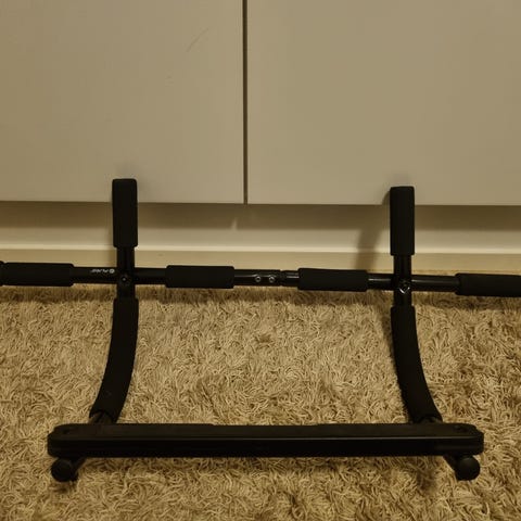 Leuanvetotanko, oveen kiinnitettävä. EcoBody merkkinen. Ehjä.
