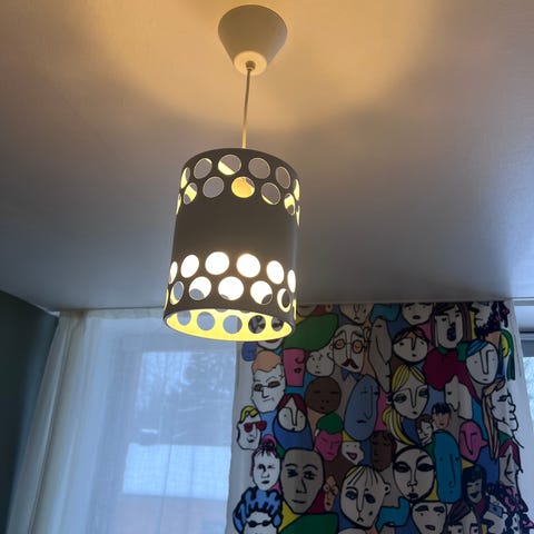 Erittäin hyvässä kunnossa oleva hopean värinen ja hyvin valaiseva valaisin ruokapöydän päälle. Neljä poltinta max 40 w E27 230V. Koko 100 x 23 cm. Vain nouto.