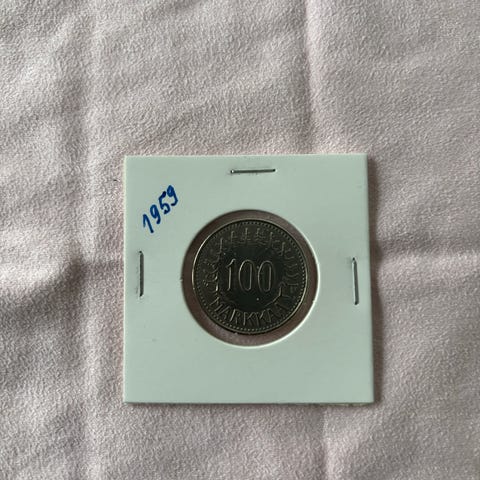 Suomen markka -kolikkosarja, jossa 100 ja 200 markan kolikoita 1950-luvulta. Kolikot on sijoitettu erillisiin pahvikehyksiin, joissa on vuosiluvut merkittynä käsin. Sopii kokoelmakäyttöön tai suomalaisen rahahistorian esittelyyn. Kolikoiden tarkat vuosiluvut ja lukumäärä ilmenevät kuvista.