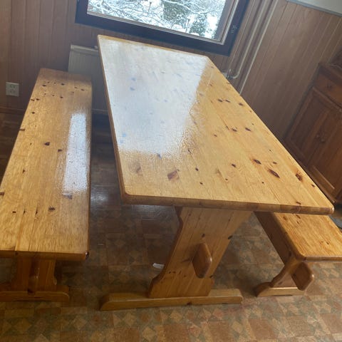 Myydään hyvässä kunnossa oleva pirttikalusto suoraan -70 luvulta. Elämisen jälkiä näkyy. Pahimmista painaumista/naarmuista kuvat. Mitat 120x70x72.