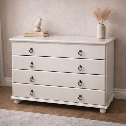 Suomessa valmistettu Harmony-merkkinen mäntypuinen lipasto.