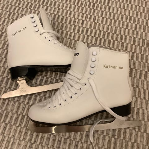 Kunnoltaan kuin uudet, kaksi kertaa luisteltu.