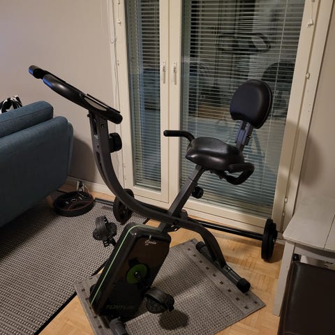 Mukana käyttöohje ja treenivinkkejä. (Oma vinkkini; ”nyrkkeile” samaan aikaan kun poljet - tuplatehokasta!)