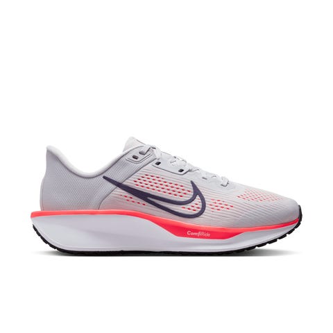 Mukavat juoksukengät. Hengittävä päällinen takaa hyvän ilmanvaihdon. Miellyttävä vaimennus välipohjassa. Ulkopohja takaa hyvän pidon alustalla.Nike Quest 6 -kengät ovat mukavat juoksukengät. Päällinen on hengittävää verkkomateriaalia, joka takaa hyvän hengittävyyden ja mukavuuden juoksulenkillä.Juoksukengän täysmittainen Zoom Air vaimentaa mukavasti ja on erittäin mukava liikkuessa. Välipohjassa on pehmeä ja mukava vaahto, joka takaa erinomaisen mukavuuden.Ulkopohjan kumimateriaalin ansiosta juoksukenkä antaa hyvän ponnistusvoiman ja hyvän pidon alustasta.