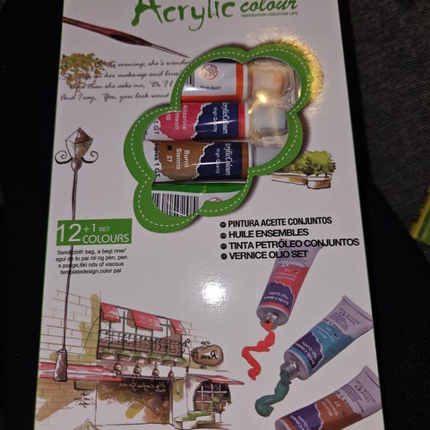 Tokmannilta ostettu puinen Craft Sensation taidetarvikesalkku. Osa jäänyt kokonaan käyttämättä. Ylemmän kerroksen puuvärejä ja vesivärejä käytetty. Toinen pensseli puuttuu.