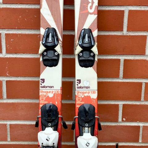 Salomon laskettelusukset siteillä. Pituus 140 cm, nuorisokoko. Sukset ovat siistit.