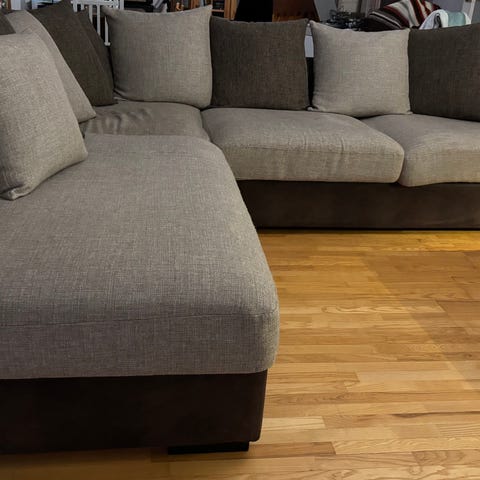 Myydään kulmasohva ja rahi. Mitat 200x250x90.