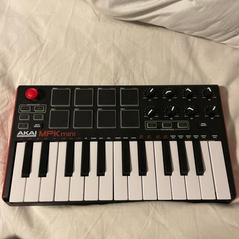 Pienet midi-koskettimet. Liitäntä mini usb, jonka kautta saa virrat ja kiinni koneeseen.
