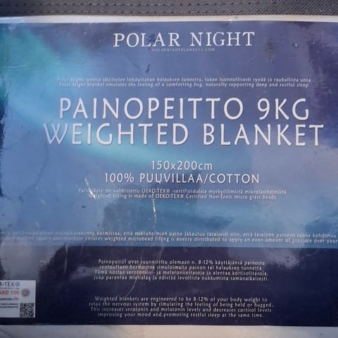 Myydään parina yönä testattu painopeitto 9 kg. Ei ole pesty. Päällä on ollut pussilakana käytettäessä.
