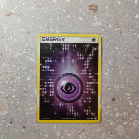 Boost Energy Pokemon EX Deoxys sarjasta (2005). Kortti on reverse holo ja "stamped".