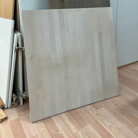 Valkoinen pöytälevy ja mustat jalat metallia. Pöytätasossa jotain pientä jälkeä. Nopea nouto.