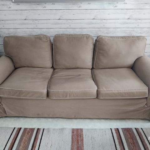 (Meiltä löytyy myös 3-istuttava sohva, mutta siinä on jo vajoamaa ja tyynyt länässä, saa vaikka kaupan päälle jos haluaa)