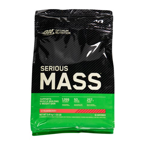 Proteiinijauhe, joka on suunniteltu lisäämään lihastilavuutta. Sisältää tasapainoisen yhdistelmän proteiineja, hiilihydraatteja ja välttämättömiä ravintoaineita. Paino: 2727 grammaa.Optimum Nutritionin Serious Mass on valmistettu ultrasuodatetun heraproteiinitiivisteen, kalsiumkaseinaatin ja muna-albumiinin sekä lisättyjen glutamiinin ja kreatiinin sekoituksesta.Sekoitus on suunniteltu sekä nopeaan että pitkäaikaiseen proteiinin saantiin, tukemaan lihasten muodostumista, edistämään palautumista ja parantamaan suorituskykyä. Se on ihanteellinen myös urheilijoille, jotka haluavat nostaa painoaan tai joilla on suuri energiantarve.Sekoita 2 mittalusikallista (noin 337 grammaa) 7 dl:aan vettä tai maitoa ja nauti liikunnan jälkeen tai välipalana, jos tarvitset proteiinilisää. Suositeltu päivittäinen annos on 1–2 annosta päivässä.