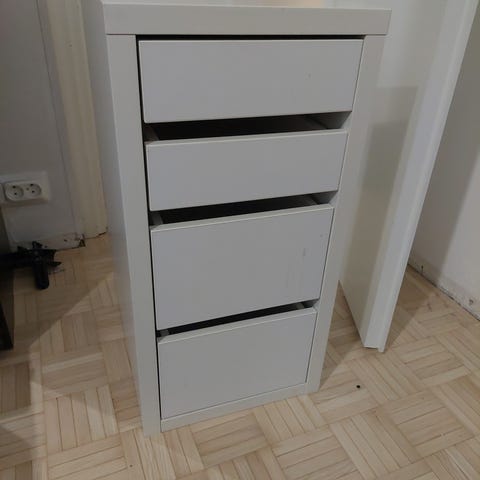 Myydään IKEA lipasto, jossa neljä vetolaatikkoa. Väri valkoinen, Kaytöjälkiä