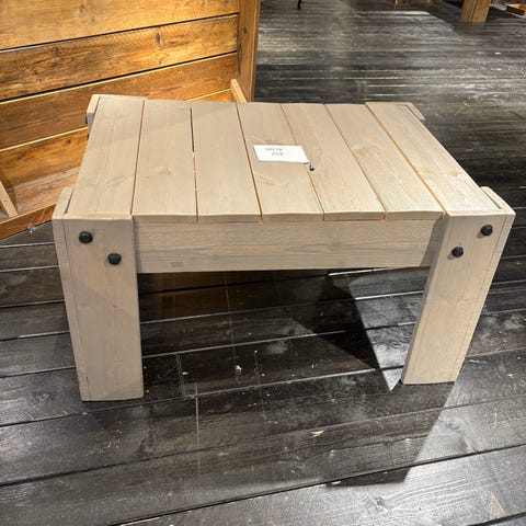 Vekestä ostettu ja käyttämättömäksi jäänyt penkki. Lappu edelleen paikoillaan.
