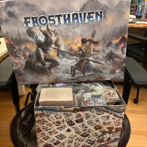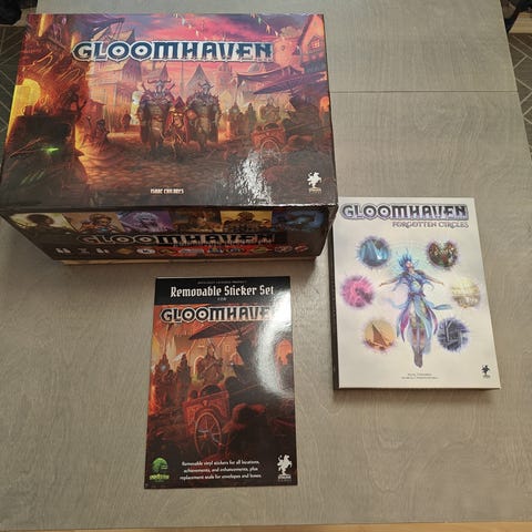 Gloomhaven + Forgotten Circles + puinen organizer