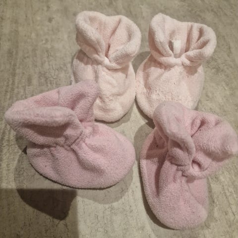 Vaaleanpunaiset vauvan villasukat koko 0-6 kk