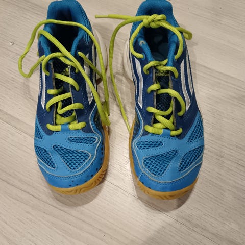 Adidaksen sisäpelikengät, kokomerkintä 34. Melko vähän pidetyt, ihan jotain pientä väri jälkeä toisessa kärjessä.