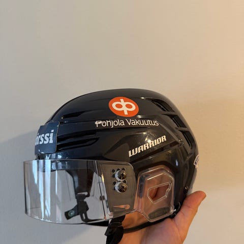 Warrior Alpha jääkiekkokypärä ristikolla. Kypärässä on metallinen kasvoristikko ja säädettävä leukahihna. Väri on valkoinen ja kuorirakenne on suunniteltu jääkiekon pelaamiseen. Soveltuu jääkiekkokäyttöön suojaamaan päätä ja kasvoja harjoituksissa ja peleissä.