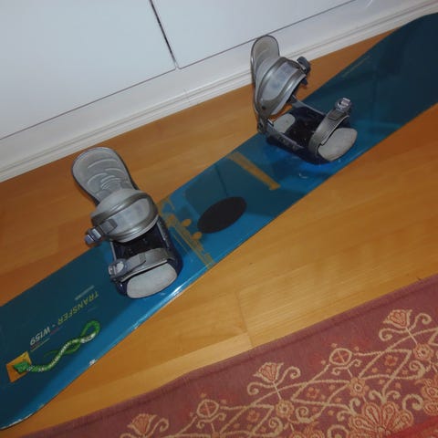 Vanha mutta hyväkuntoinen lumilauta.