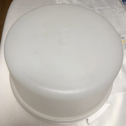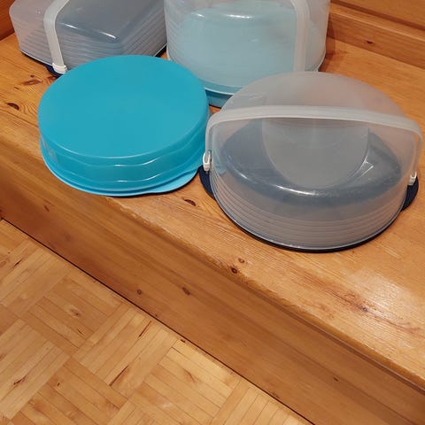 Tupperware. Twist n Carry Juhlakupu punaisella pohjalla, pohjaa voi käyttää molemmin puoli kupu säädettävä 2 korkeutta kahvallinen kupu korkeus ylhäällä 20 cm menee matalammaksi 13,5 cm halkaisija 31,5 cm käyttämätön hinta 64 € ja