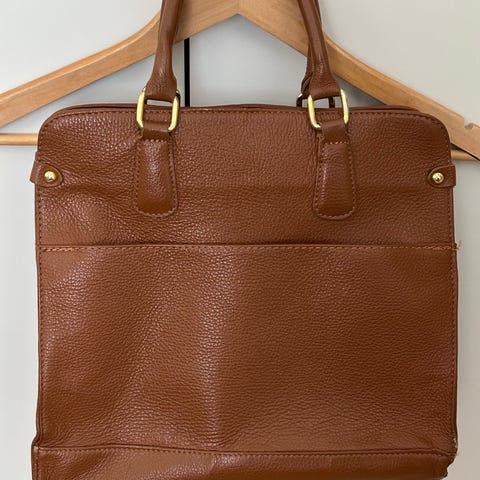 Stockmannilta ostettu Global-merkin laukku pehmeää nahkaa. Väri harmaa ja metalliosat ruusukultaa. Laukun alaosassa ja etutaskun vuorikankaassa tahroja.