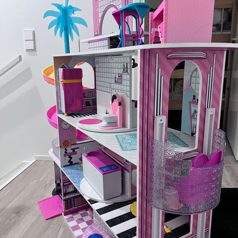 Tuunattu LOL nukkekoti ja sekalaiset kalusteet. Hissin ruuvi irtonainen, saanee korjattua. Alaosasta puuttuu muutama muovinen ”allas”. Elämää nähnyt mutta hyvin kestää vielä seuraavan leikkijän.