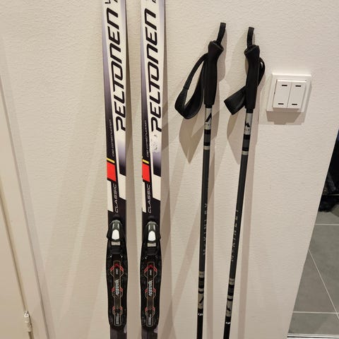 Hakusessa nuorten maastohiihtosetti, johon kuuluu maastohiihtosukset n. 165-170cm pitkät, sauvat 130-140 ja hiihtomonot kokoa 39-40 Setti joka soveltuu perinteiseen maastohiihtoon.