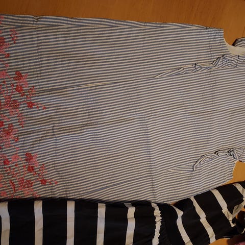 Pehmeä mekko, 95% polyesteria ja 5% elastaania.