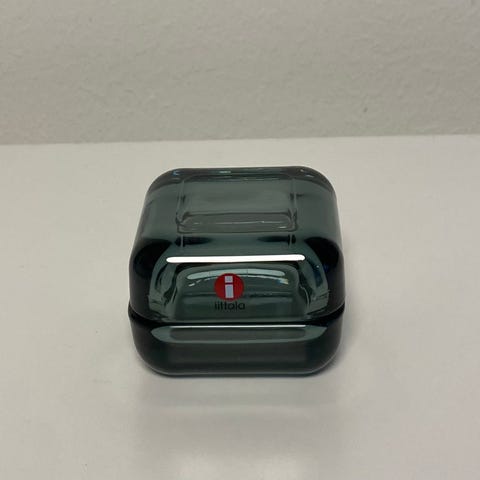 Iittala Vitriini 60x60cm, lohenpunainen-harmaa. Pientä naarmua pohjassa. Kannessa kaksi pientä ilmakuplaa.