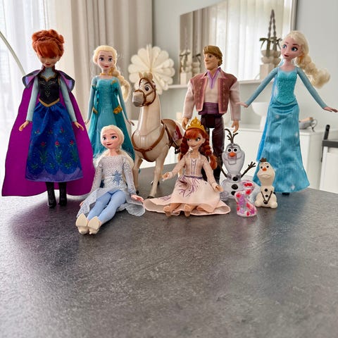 Disney Frozen leikkifiguurisetti, jossa useita elokuvan hahmoja eri kokoisina. Sopii lasten leikkeihin ja kokoelmiin. Muovisia figuureja, jotka voidaan asettaa seisomaan tasaiselle alustalle ja käyttää roolileikeissä Frozen-teeman mukaisesti.