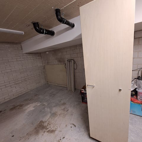Muuton takia annetaan vaatekaappi kahdella hyllyllä ja vaatetankolla.