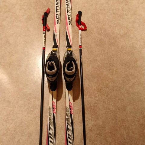 Myydään hyväkuntoinen käytetty suksipaketti nuorelle/aikuiselle perinteiseen hiihtoon koululiikuntaan kouluhiihtoon/ koululiikuntaan.