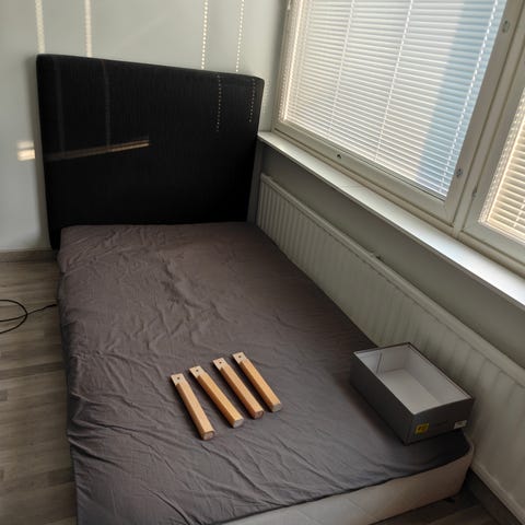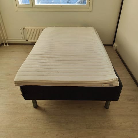 Kaksi hyväkuntoista ylimääräiseksi jäänyttä sängynrunkoa. Patja ja petari ei tule mukaan.