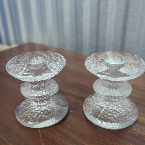 Iittala Festivo kynttilänjalka kirkasta lasia. Kynttilänjalassa on tunnusomainen, kohokuvioitu ja kerroksellinen muotoilu. Sopii kruunukynttilälle ja käyttöön esimerkiksi ruokapöydällä, sivupöydällä tai osana sisustuksen lasiesinekokoelmaa.