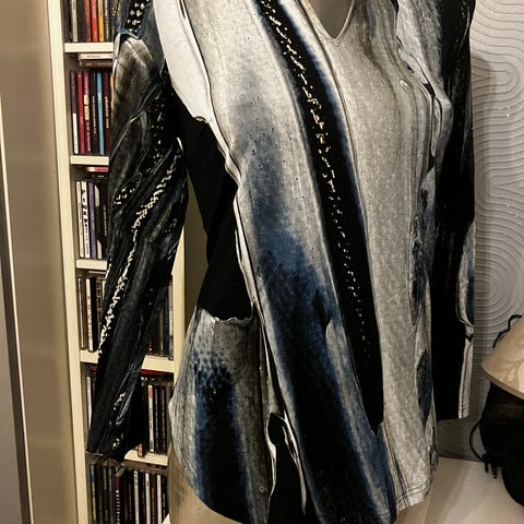Myynnissä kuvan todella kaunis laskeutuvaa polyesteriä oleva paita