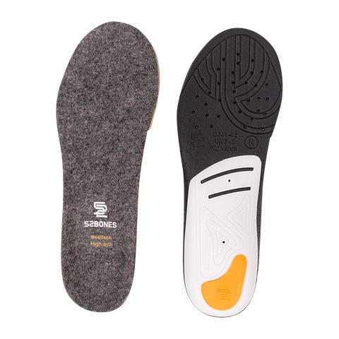 Tekninen tukipohjallinen, jonka korkea jalkaholvi, tyyny ja syvä kantakappi tuo vakautta, vaimennusta ja villasisuksen. Miellyttävä muotoilu sopii ulkoiluun.52BONES WoolTech High on teknisesti muotoiltu pohjallinen niille, jotka tarvitsevat lisätukea ja vaimennusta. Se yhdistää vakauden luonnolliseen lämpötilan säätelyyn ja on ihanteellinen vaellukseen, metsästykseen ja hiihtoon.Päällimmäisen kerroksen villasekoite pitää jalat lämpiminä ja mukavina, kun taas syvä kantakappi ja tyyny antavat tasapainoista tukea ja edistävät paineen tasaista jakautumista.Pohja on kaksinkertaista tiivistä EVA-vaahtomuovia, joka vaimentaa tehokkaasti iskuja myös pitkinä päivinä raskaammissa jalkineissa. Dynaaminen muotoilu myötäilee jalan luonnollisia liikkeitä ja vähentää jalkojen, polvien ja nivelten rasitusta.WoolTech on luotettava valinta kaikille, jotka etsivät mukavuutta, tukea ja lämpöä vaativissa olosuhteissa.Saatavana kolme eri vaihtoehtoa: matala, keskitaso ja korkea.Yksityiskohdat:- Syvä kantakappi parantaa vakautta- Tyyny, joka tukee päkiää- Kaksinkertainen tiivis EVA-vaahtomuovi vaimentaa iskuja- Päällimmäisen kerroksen villasekoite lämmittää ja siirtää kosteutta- Noin 132 g/pari- Hieman leveämpi malli – sopii raskaammille kengille- Sopii patikointiin, metsästykseen, hiihtoon ja muuhun ulkoiluun