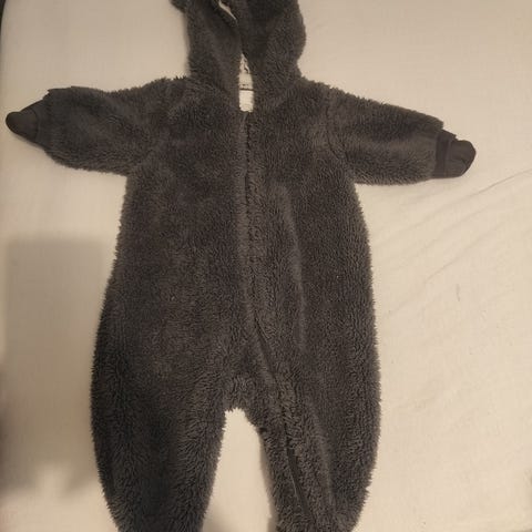 H&M vauvan haalari, koko 62. Väri valkoinen ja malli unisex. Haalari on kokopitkä ja siinä on pitkät hihat. Edessä kulkee vetoketju helpottamassa pukemista ja riisumista. Materiaali on pehmeää ja pörröistä, sopii käytettäväksi vaunuhaalarina päällikerroksena sään mukaan. Soveltuu sekä tytölle että pojalle.