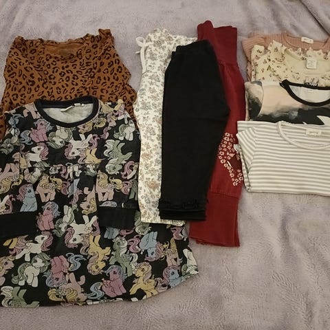 Olleet käytössä yhdellä tai useammalla lapsella. Kaikki vaatteet ovat ehjiä ja tahrattomia, hyvät vielä seuraavalle.