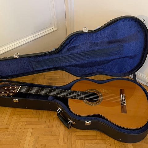 Japanissa valmistettu akustinen klassinen nailonkielinen kitara vuodelta 1981. Rungossa numero 8151. Tehty valikoiduista puulajeista. Täyskuusikansi. Sivut, kansi ja kaula mahonkia. Puinen, upea ääniaukon Rosetta.